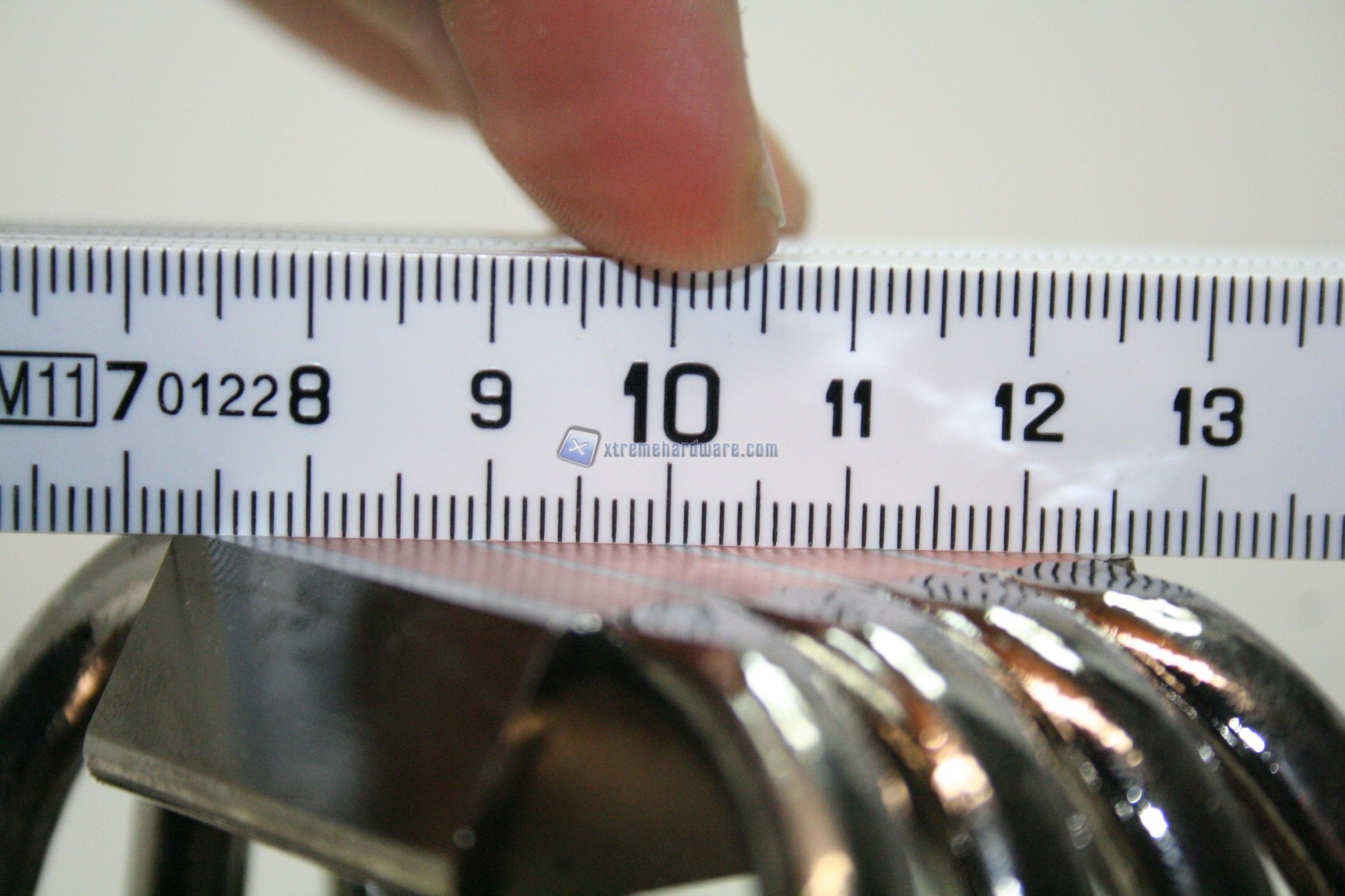 La base presenta quindi un contatto diretto CDC ed è perfettamente planare. E’ di buona qualità, non è ovviamente lappata a specchio, anche se sono presenti i segni della lavorazione industriale. Le saldature sulle heatpipes sono di buona fattura. La base convessa non è consigliabile sul socket LGA 2011, in quanto il problema della deformazione a “banana” del socket non è più presente, al contrario del sistema 1155-56/1366, dove invece un minimo di convessità è consigliata. In questo caso renderà meglio su socket tipo 2011.