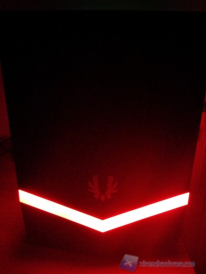 La caratteristica principale del BitFenix Colossus M-ATX è senza dubbio la striscia LED che percorre il frontale ed i lati dello chassis. Tale LED è alimentato semplicemente da un connettore SATA ed ha la possibilità di essere regolato su tre colorazione (Rosso, Blu e Verde) tramite un comodo tasto posto a lato dello chassis. Vi riportiamo dunque le immagini al buio con il relativo effetto.